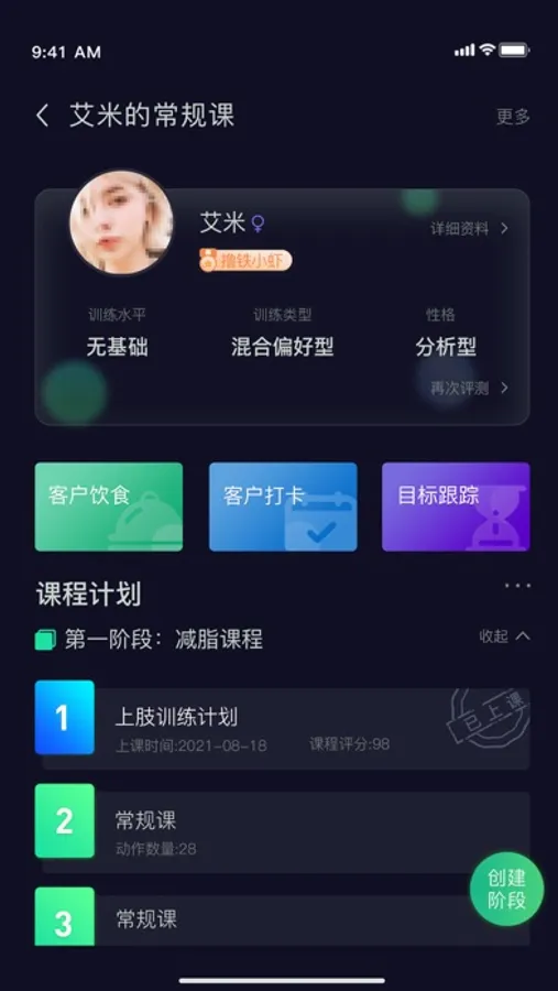 除了训练计划制作以外,内置了整套客户课前、课中、课后的测评功能,包括:私教会员的水平、类型、性格、当下身体状态、课后训练打分等整套执教流程。