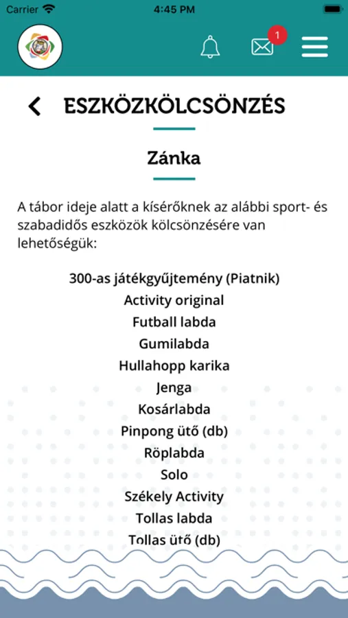 Az applikáció a tábori élet résztvevőinek tartalmaz olyan hasznos és fontos információkat, amelyek a táborozást segíthetik.