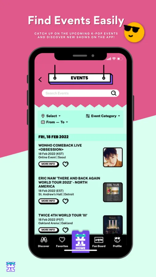 Favourite and bookmark any K-Pop event or artist and be notified on on all your favourites!