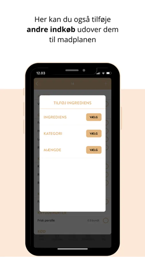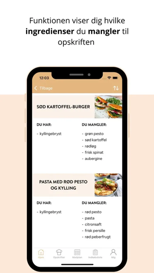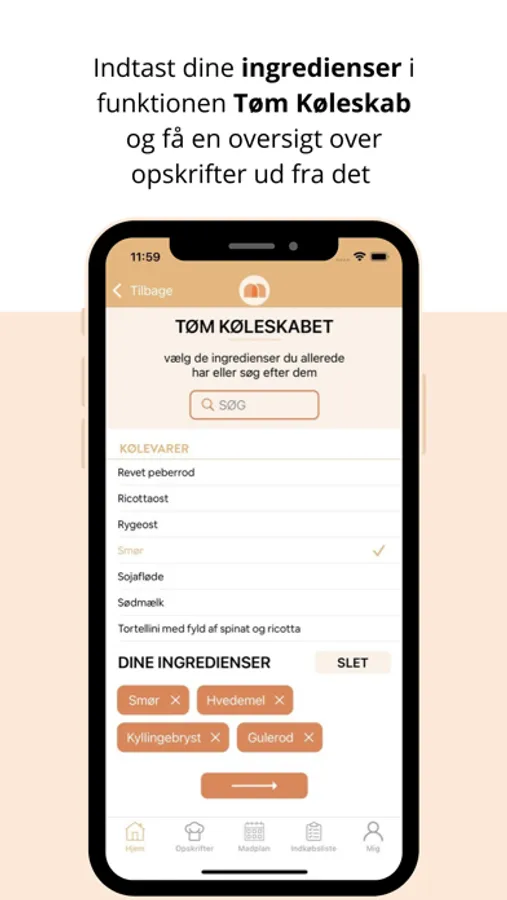 - Tøm køleskabsfunktion, hvor du kan indtaste de ingredienser du har
