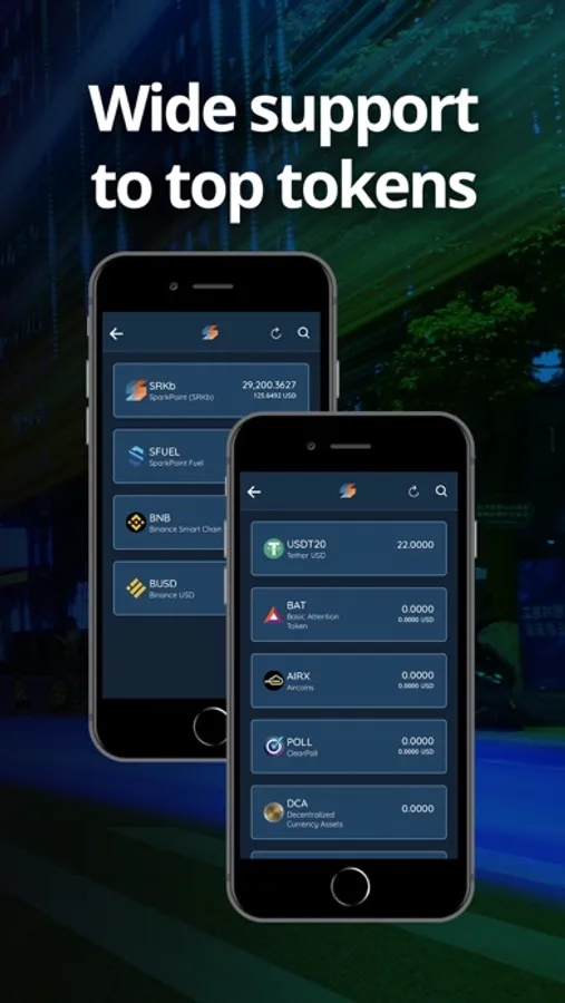 • Natively supports SparkPoint (SRK) and SparkDeFi’s governance token SparkPoint Fuel (SFUEL), and the current top tokens in the market like Bitcoin (BTC), Ethereum (ETH), Binance Coin (BNB), Tether (USDT), and many more.