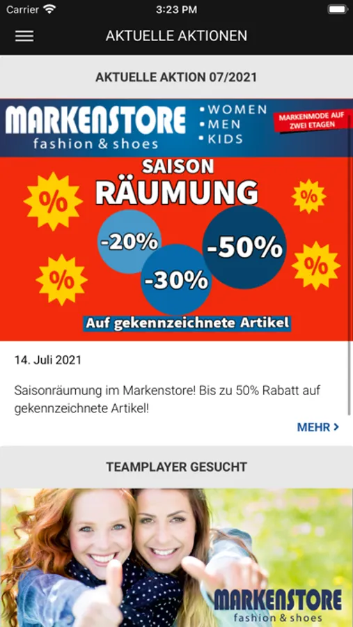 1. Ein Muss für alle Mode-Fans: Mit der Markenstore App haben Sie exklusive Vorteile als Markenstore Kunde und Ihre digitale Kundenkarte immer auf Ihrem Smartphone dabei.