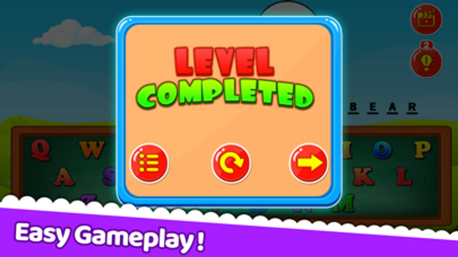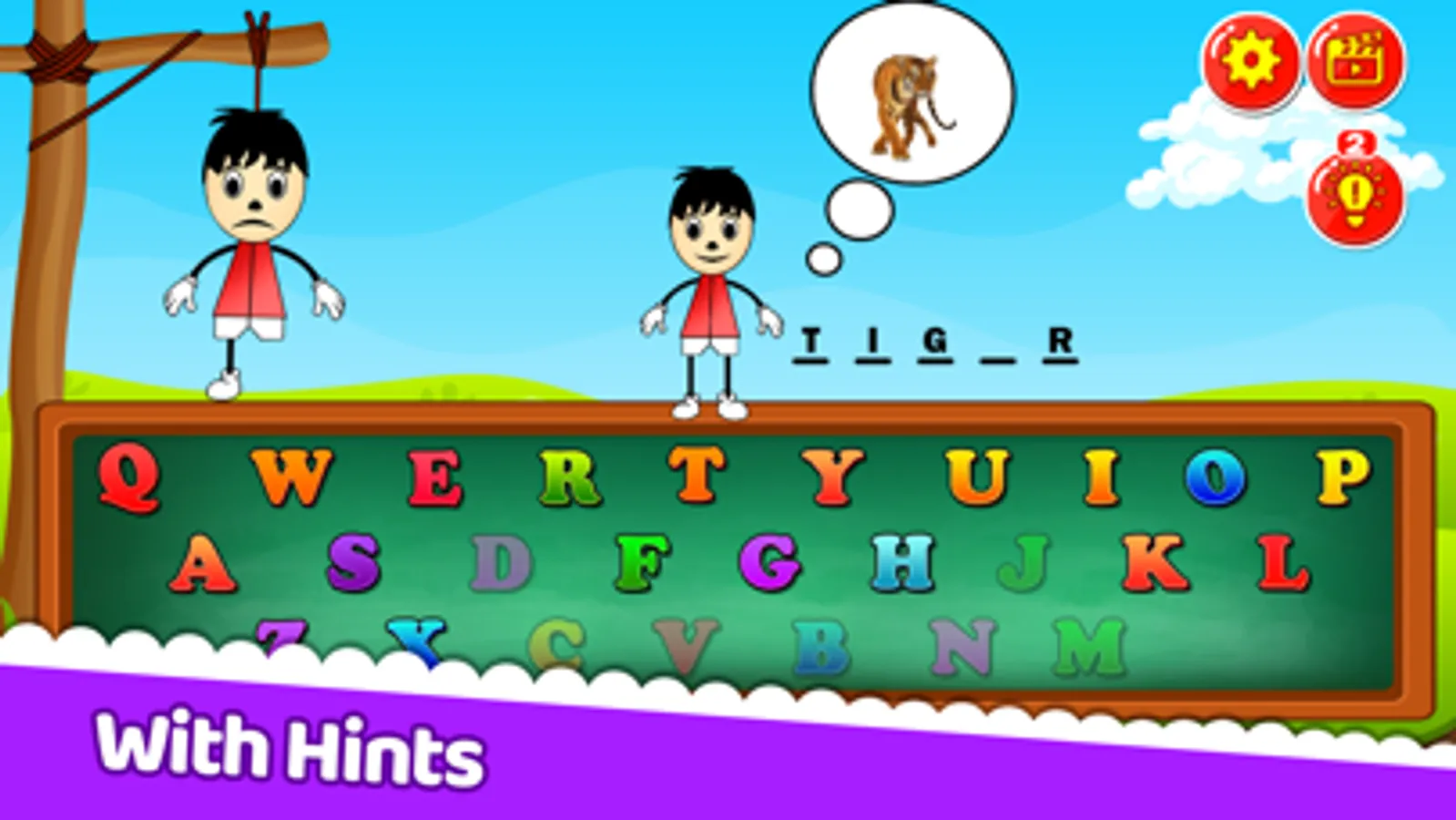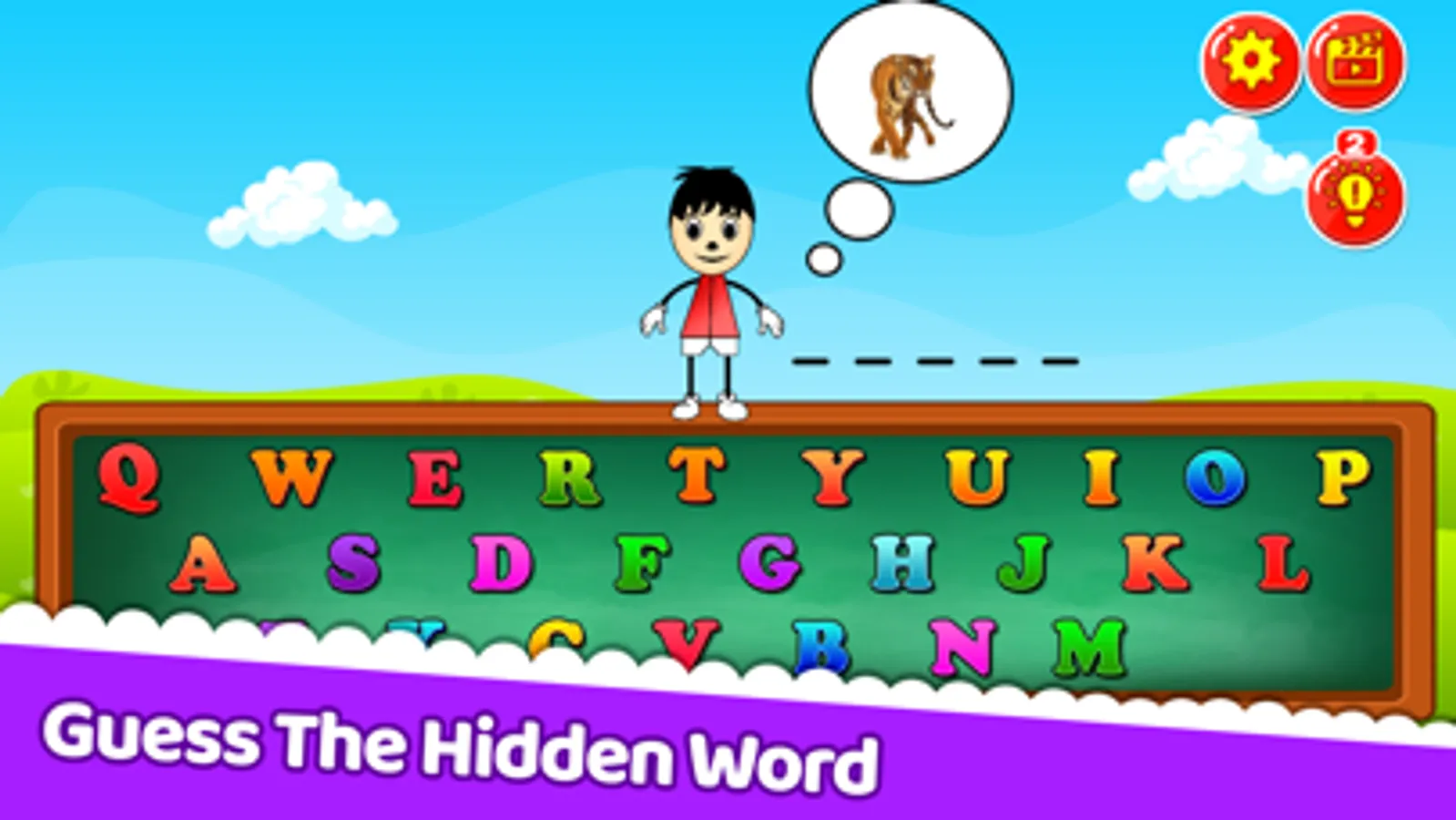 Each word in given hint character to put in blank space, One type of educational game for learn new word.