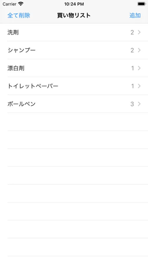 買い物の一覧表示、追加、削除はもちろん、編集や全項目の削除も可能です!