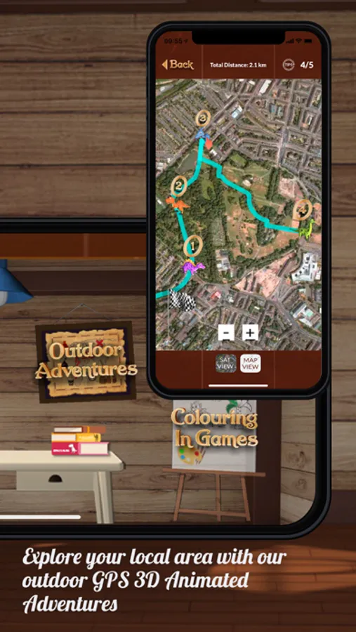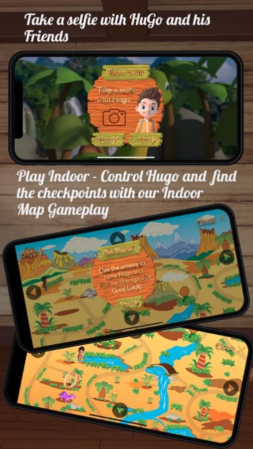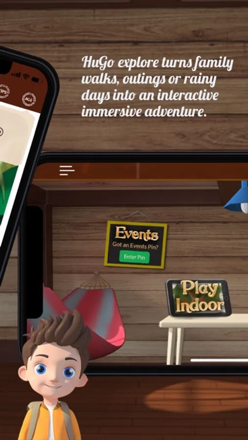 Routes - Choose a pre-plotted route nearby or create your own by simply placing five checkpoints. Within a minute you child will be the central figure in one of Hugo's adventures. Make your way to the next checkpoint to continue the animated/augmented reality adventure.