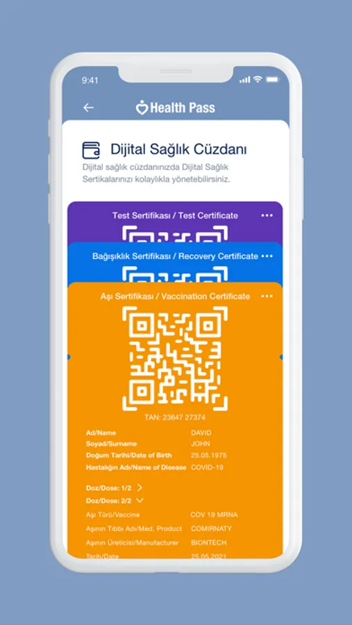 Health Pass uygulaması aşı, test ve bağışıklık sertifikalarınızı uluslararası standartlarda saklayabileceğiniz ve seyahat esnasında kolaylıkla kullanabileceğiniz bir uygulamadır. e-Nabız uygulaması üzerinden aşı, test ve bağışıklık bilgilerinizi Health Pass uygulamasına aktarıp sertifikaya dönüştürebilir, ürettiğiniz sertifikaları telefonunuz üzerinde güvenli şekilde saklayabilirsiniz.