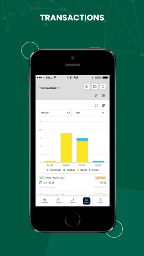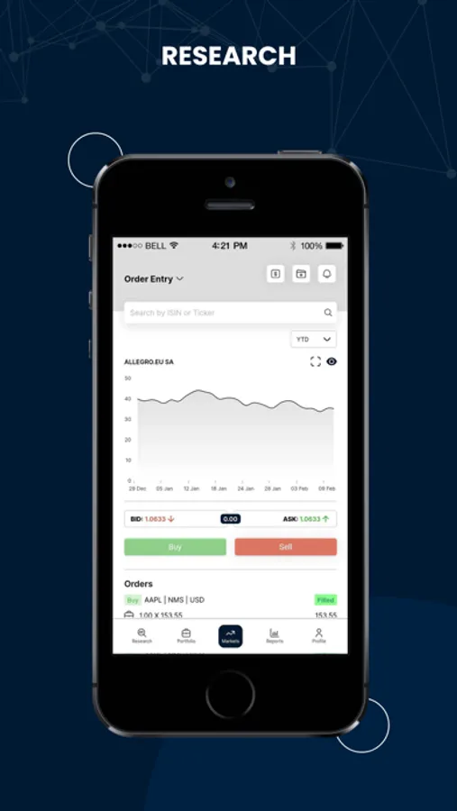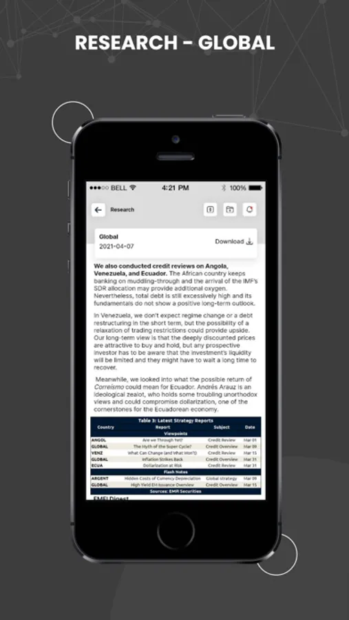 The app provides financial data, analytics and research in addition to the ability to execute, settle and custody financial securities for professional investors.