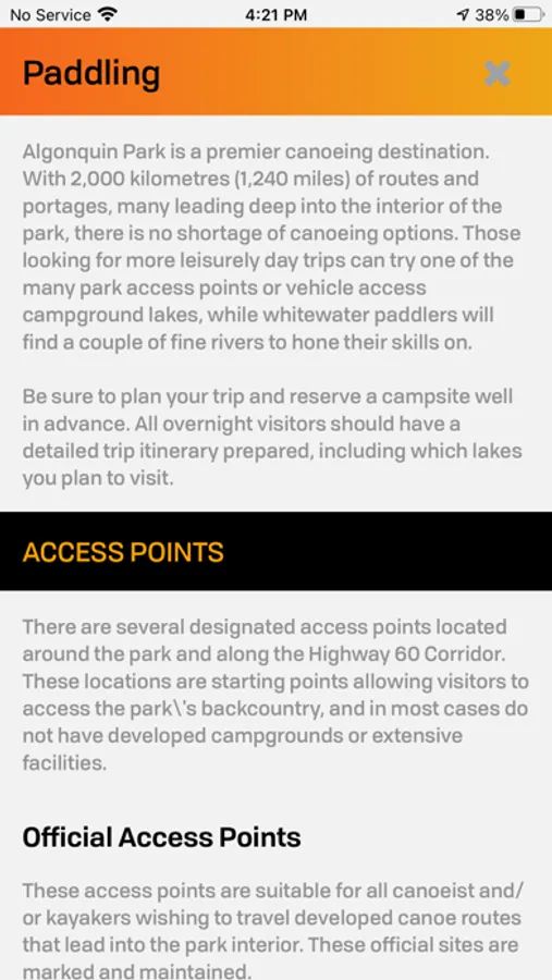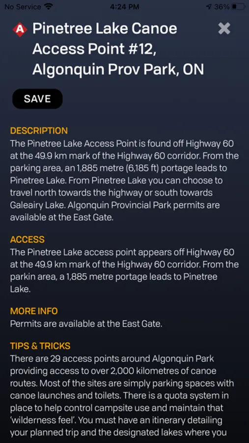 The Algonquin Park Adventure Map app is an offline navigation app showing all the paddling routes, campsites, trails, fishing locations, roadside attractions, wildlife viewing areas and more. The app allows tracking and dropping of waypoints, while thousands of points of interest provide information on everything from canoe routes to hiking and backpacking trails.