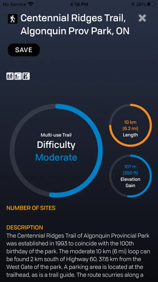 If you are not interested in certain activities, this backcountry navigation app allows you to turn the Adventure layers on and off, as well as Crown Land and Resource and Recreational Roads in and around the park. Within each Adventure are hundreds of points of interest (POI) providing descriptions of activities, access information, trail stats such as difficulty, length, elevation gain and much more. These options all overlay on top of the BRMB base map, which provides the most comprehensive collection of road and geographical information available for the park on the market.