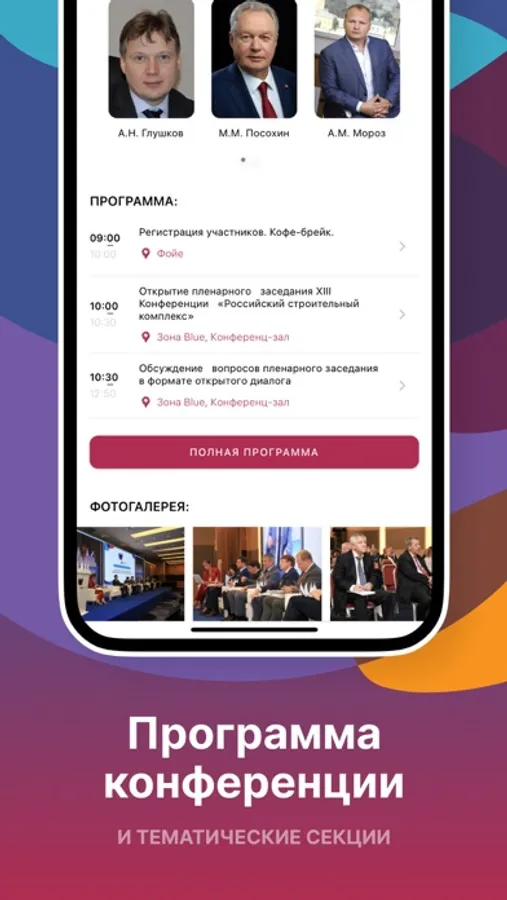 Приложение всероссийской конференции «Российский строительный комплекс». Расписание конференции, быстрый доступ к секциям мероприятия, возможность задать вопрос ведущему, фотоматериалы и online-трансляция. Позволяет быстро зарегистрироваться на конференцию.