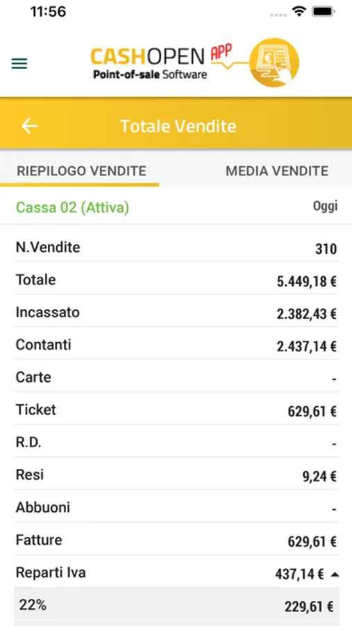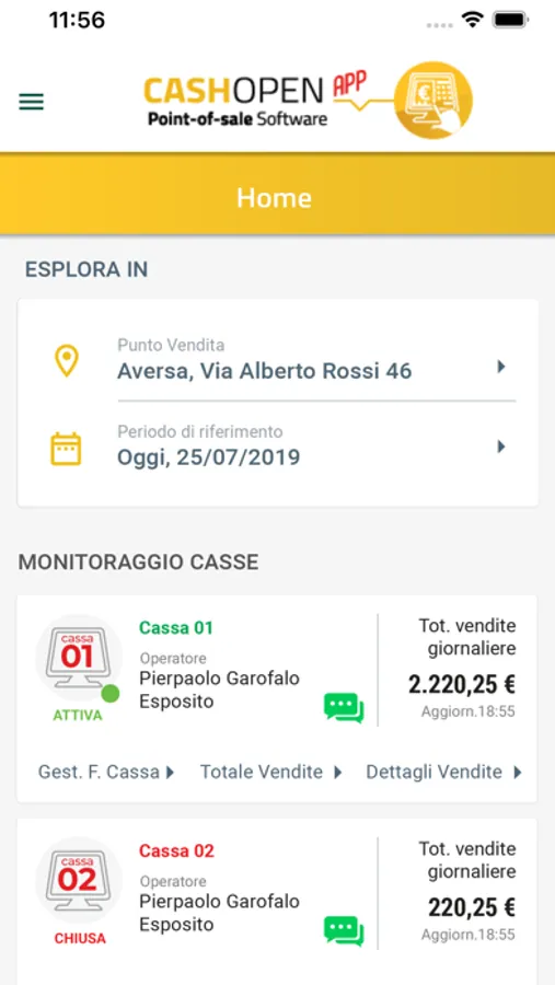 * Monitorare in tempo reale incassi del singolo punto vendita
