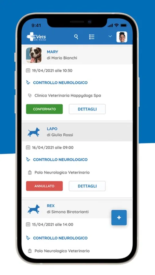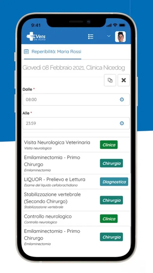 Se sei un ambulatorio veterinario o una clinica veterinaria con la nostra nuova app Vets On Road è tutto sempre a portata di mano. Ora gestire la richiesta di uno specialista è più facile e veloce, direttamente dall'APP e potrai rispondere immediatamente ai tuoi clienti sulle disponibilità di una visita specialistica, senza dover necessariamente chiamare qualcuno o attendere riposte sul quando disponibile: tutto in un "click" con semplici e rapidi passaggi.