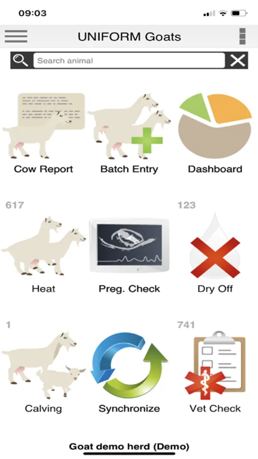 UNIFORM Goat-App is the application for mobile use of the UNIFORM-Goat 5.0 or higher herd management software. This easy to use App has a Farmer Finger Interface, large buttons that are easy to use for farmers.