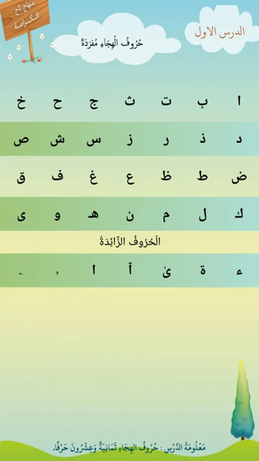 تطبيق منهاج تاج الكرامة لتعليم القراءة الحروف العربية