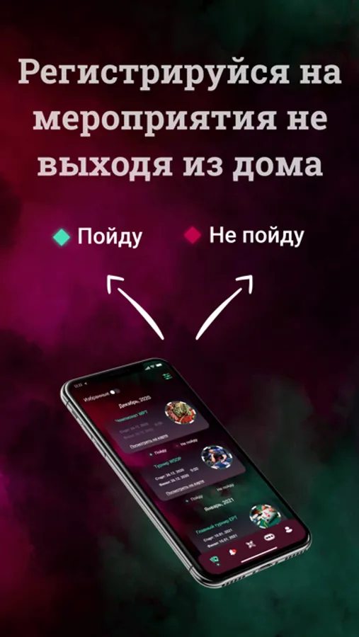 Получай приглашения на различные мероприятия и игры, выбирай понравившиеся и регистрируйся для участия в один клик.