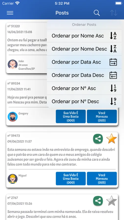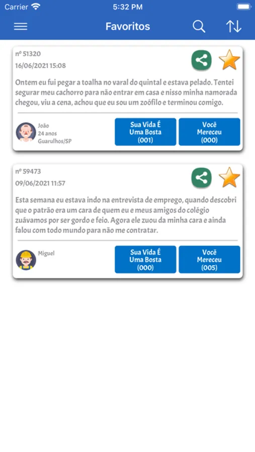 - Clique nos botões Você Mereceu ou Sua Vida é Uma Bosta para votar nos melhores posts.