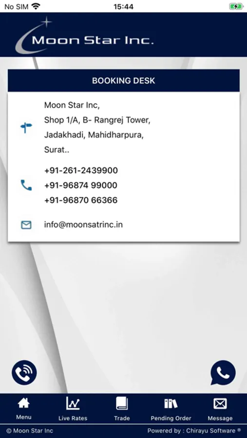 The contact details of our company such as an address, telephone numbers, mobile numbers, email I'd, website details are all mentioned under BOOKING DESK