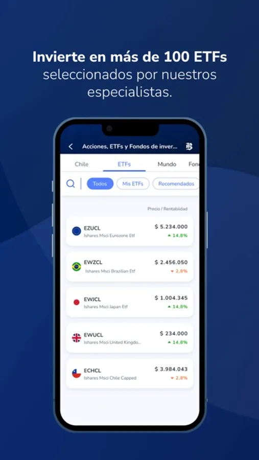 - Comprar y vender acciones en Chile y el Mundo, y más de 100 ETFs seleccionados por nuestros especialistas. Acceder a las carteras recomendadas para estos productos.