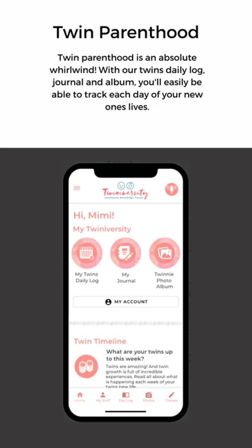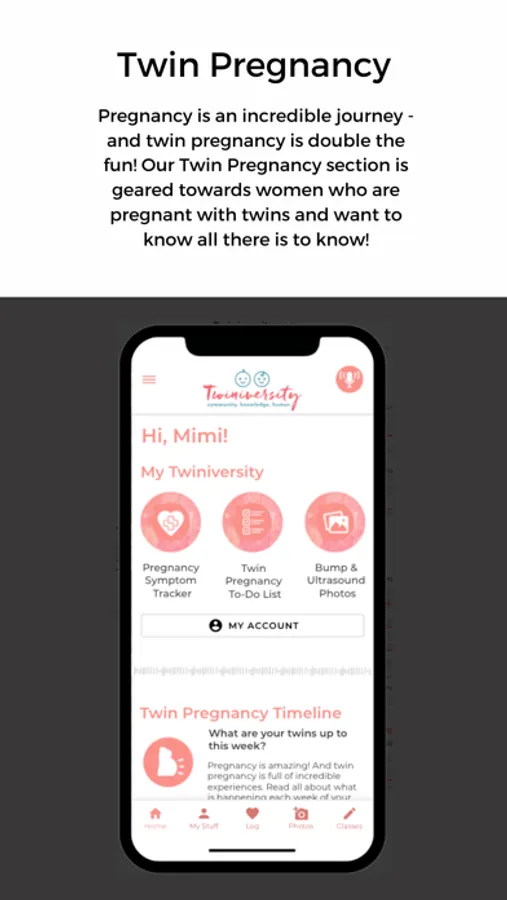 The Twiniversity App has duel sides: Twin Pregnancy Mode and Twins Mode. The Twin Pregnancy Mode is perfect for tracking your twin pregnancy symptoms, learning what’s going on with your twins week by week, saving bump and ultrasound photos, and so much more. The Twins Mode allows you to track your twins daily feeds, diaper changes, medications, breastfeeding schedule easily and quickly along with a TON more.