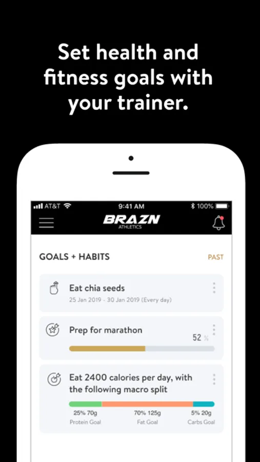 With the BRAZN App, you can start tracking your workouts and meals, measuring results, and achieving your fitness goals, all with the help of your personal trainer.