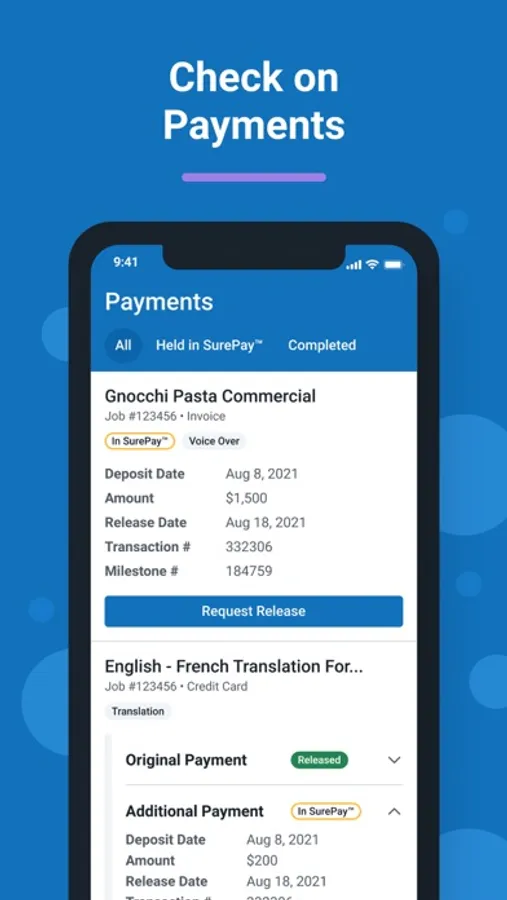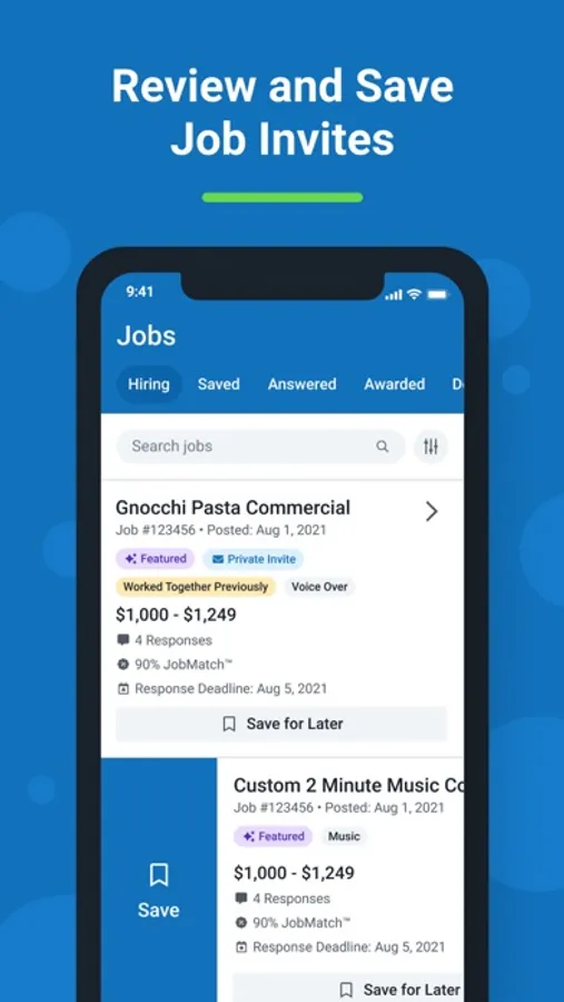 With our Voices Talent Companion app, you can easily manage jobs on the go, from saving jobs for later, to accepting job agreements, to communicating with clients, to checking on payment status for projects you’ve completed.