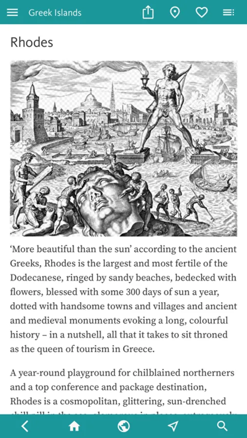 This app is the culmination of over 40 years travelling and writing about the Greek islands. It covers all the inhabited Greek islands (and some fascinating uninhabited ones), bringing out their unique personalities, history, mythology, their archaeological and historical sites, their beaches, gorges, mountains, and waterfalls (yes, there are some!), their beautiful villages and churches.