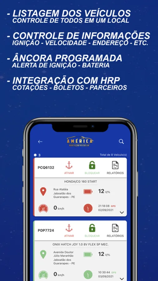 Com o aplicativo AMERICA RASTREAMENTO você terá seu carro na palma de sua mão, com mais segurança e confiabilidade, podendo acessar dados dele a qualquer hora e em tempo real.