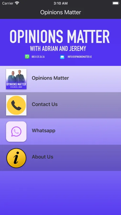 Opinions matter is an Irish online debate show and the brainchild of multi award winning radio hosts and broadcasters Adrian Kennedy & Jeremy Dixon. All opinions matter!