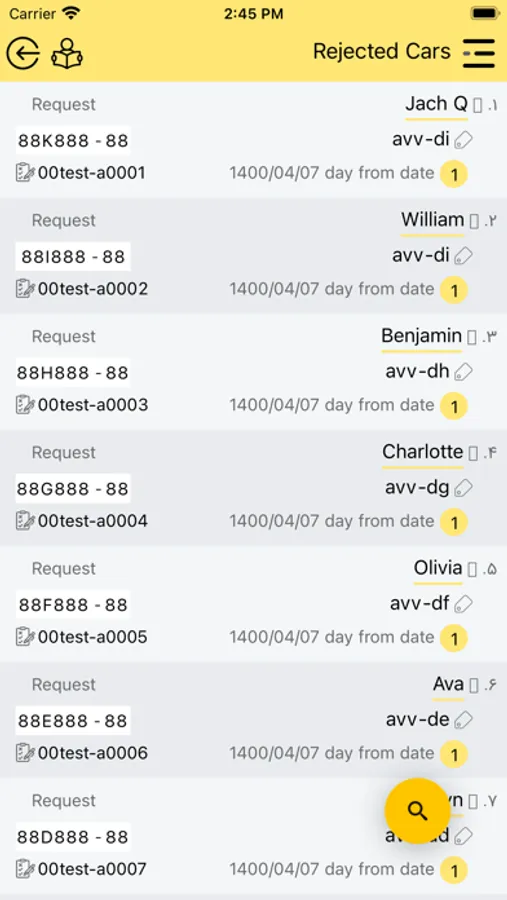 - Register rejected cars and change status of repair levels.