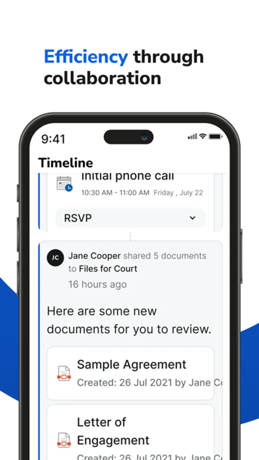 A secure environment for you to collaborate and share files with your lawyer.