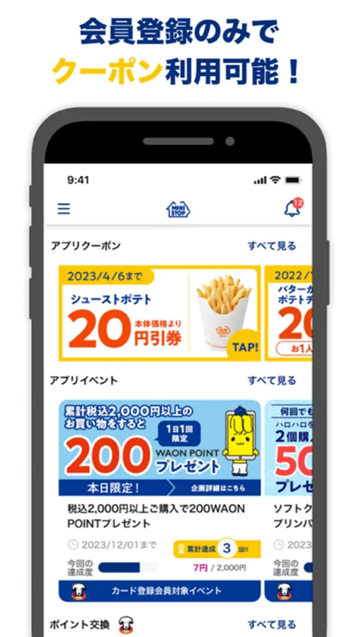 お得なクーポンがもらえたり、開催中のイベントに参加が出来ます。