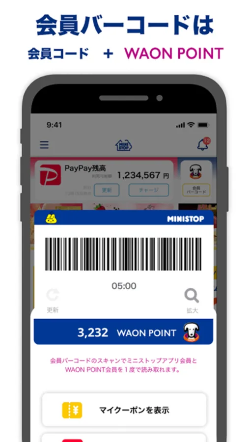 ミニストップアプリ会員バーコードをスキャンしてお買いものすることで