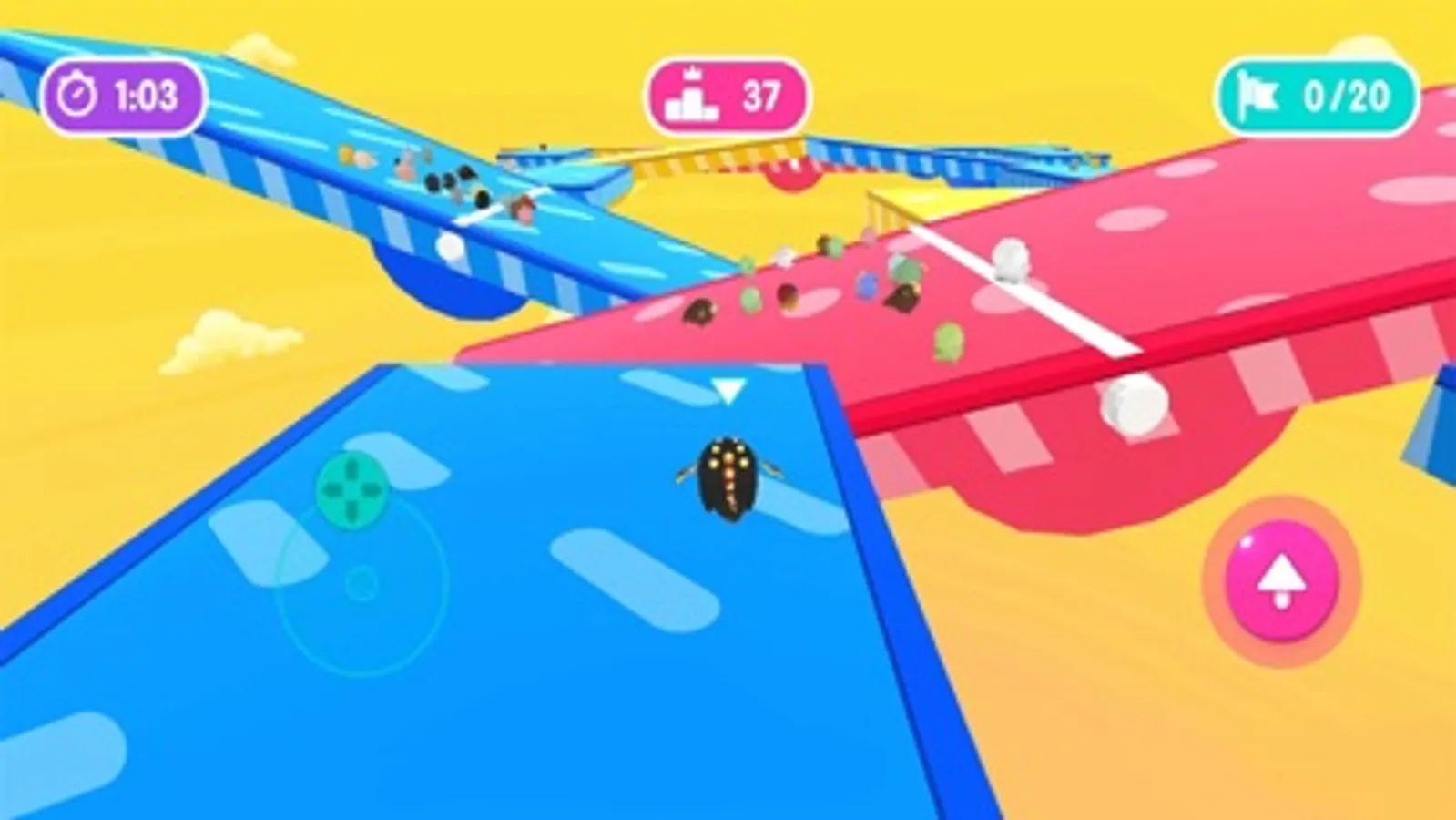There are 2 rounds and 50 players. You have to race, pass at least 30 opponents to reach the top 20 fastest finishers, and participate in round 2. In round 2, help your dinosaur not fall down to become the only one on the ring. You will win.