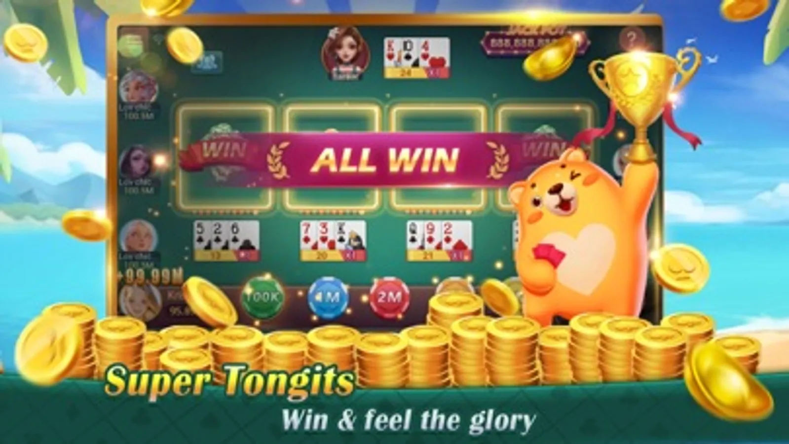Play Tongits with million players on mobile with your strategy. Win 2 rounds in a row to hit gold pot.