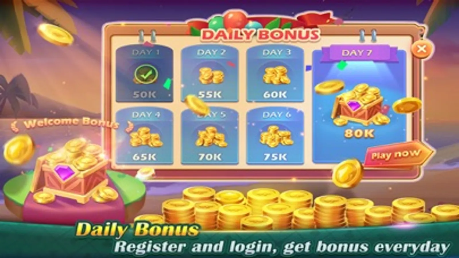 -Login everyday, get daily bonus every day and win more everyday.