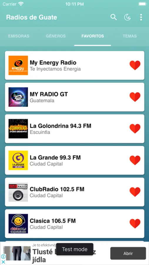 - Opcion de marcar radios como favoritas en el menu Favoritos.