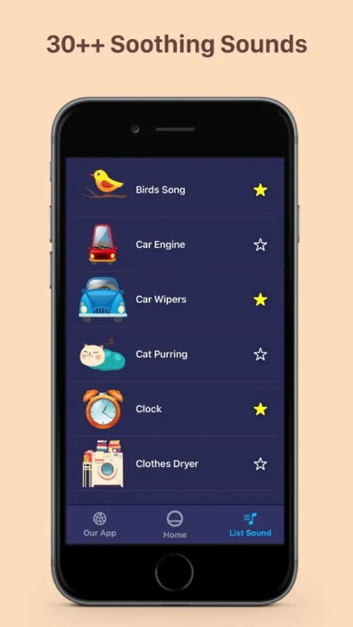 - Just put the phone at a suitable distance from the child, choose a sound and set the timer that turns off the application after a specified time. After a short time the child should calm down, stop crying and fall asleep.