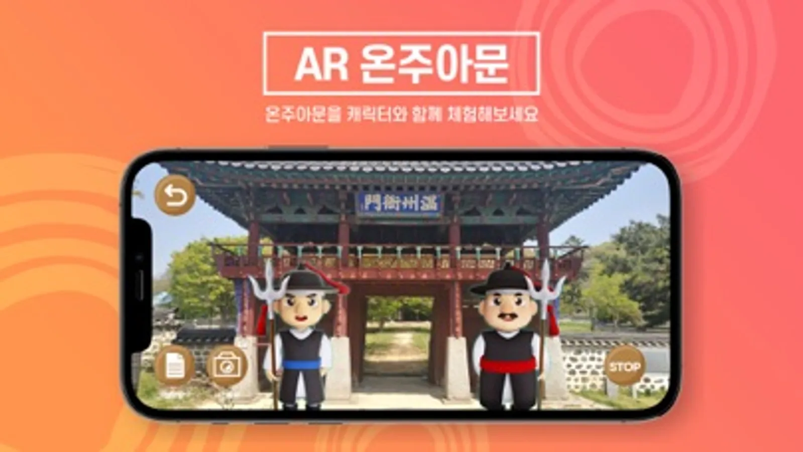 아산시 온주아문을 캐릭터와 함께 AR로 즐겨보아요.