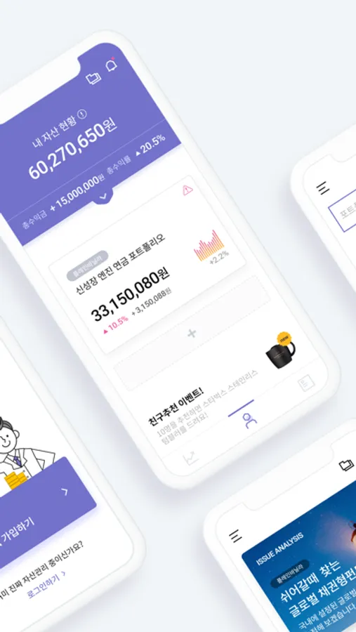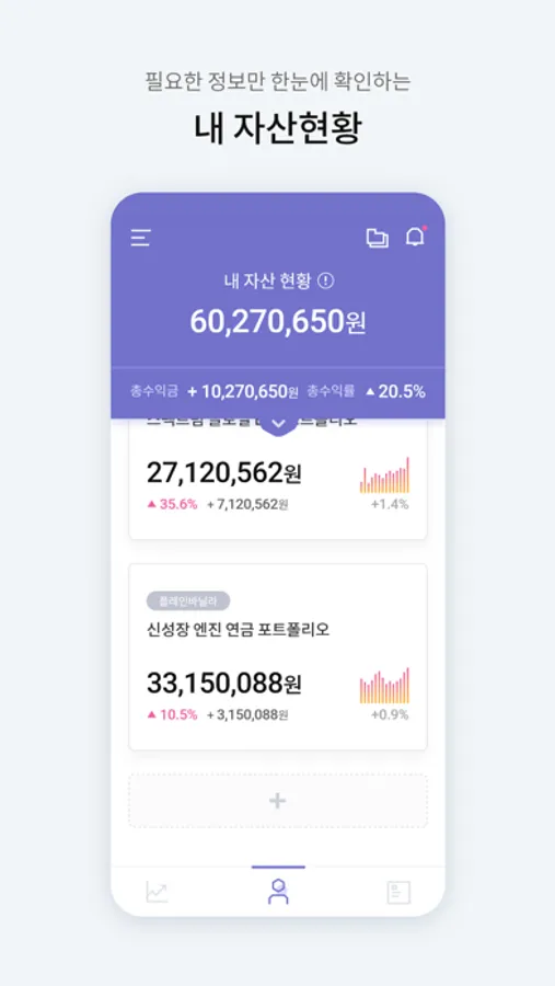 높은 문턱처럼 여겨졌던 금융사의 자산 관리 서비스를 쉽고 편리하게.