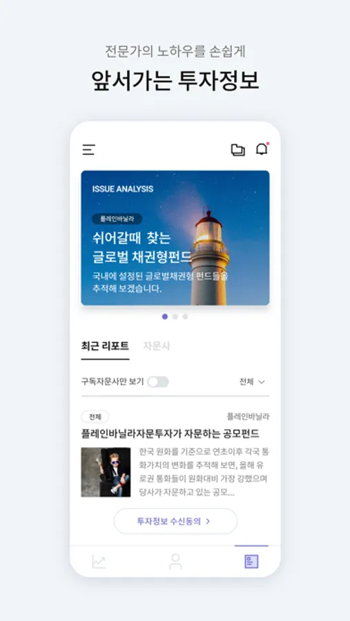 투자자문사들이 직접 작성해 공유하는 투자 콘텐츠를 통해 트렌드를 놓치지 않는 스마트한 투자자가 되어 보세요.