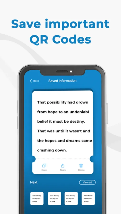 • Stores all your QR codes in one place; QR Folder.