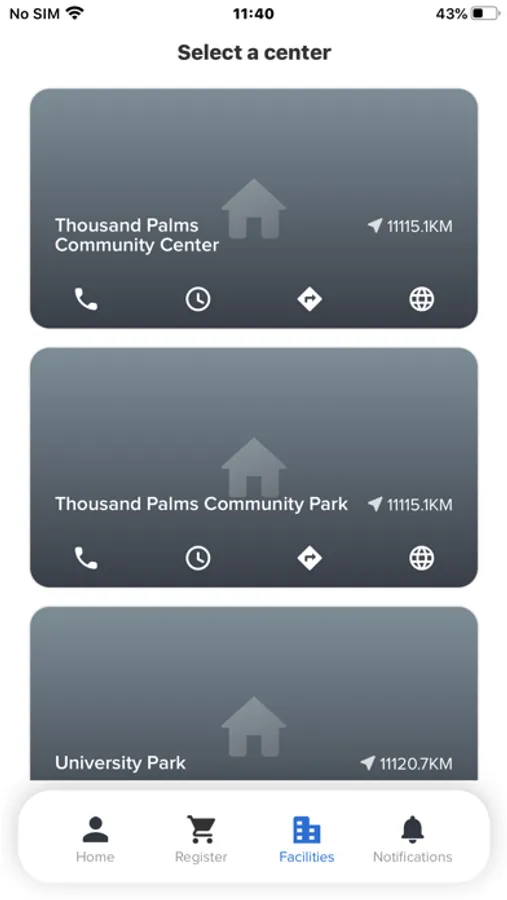 on the Home tab, view a center’s operating hours, manage your reservations and open your membership barcodes.