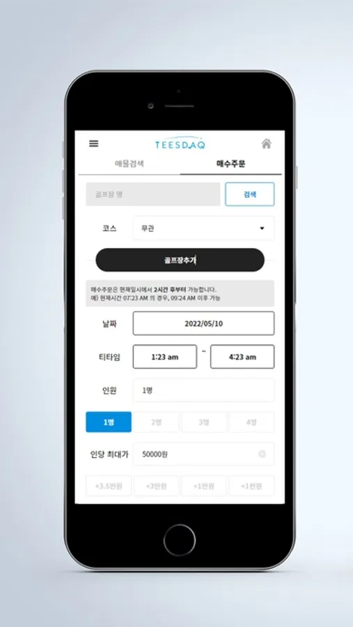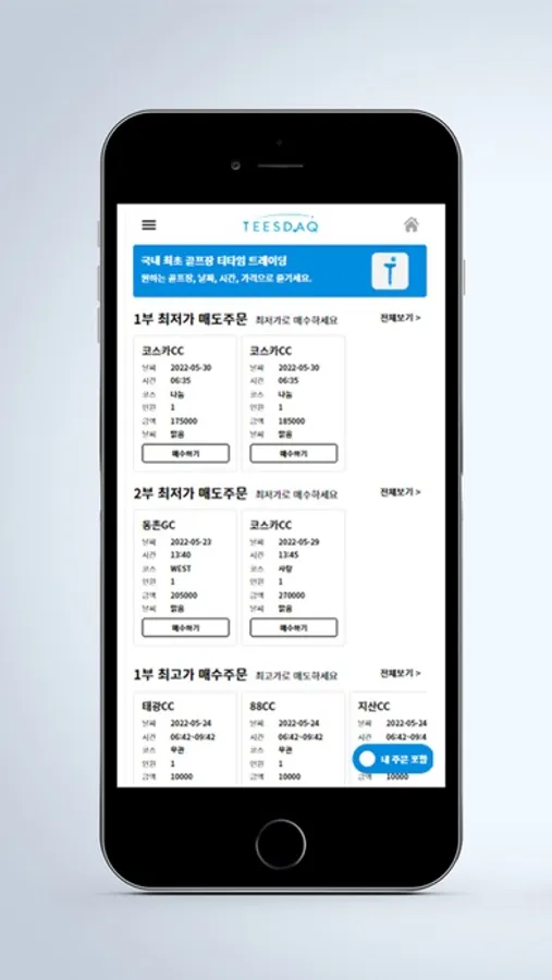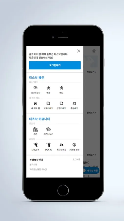 골퍼들을 위한 신개념 예약(부킹), 조인, 양도 시스템 티스닥! 예약걱정 No, 취소걱정 No, 부킹전쟁 No, 노쇼걱정 No, 불참걱정 No, 허위매물 No, 반복검색 No, 매복대기 No, 스트레스 No! 골퍼들은 위한 골프 티타임 예약의 새로운 패러다임. 오늘도 티스닥 하세요!