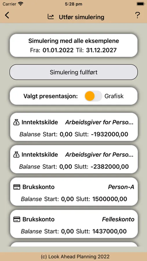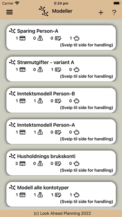 Tungt med regneark og detaljerte budsjetter? Lag heller enkle modeller som beskriver forskjellige økonomiske forhold. Kombiner dem i simuleringer som kjapt viser framtidige prognoser, presentert som grafikk og transaksjoner, i år-, måned- og dagoversikter. Opprett varianter av modeller, f.eks. for oppvarming, transport, bolig etc., og anvend dem i forskjellige simuleringer for å forstå konsekvensene.