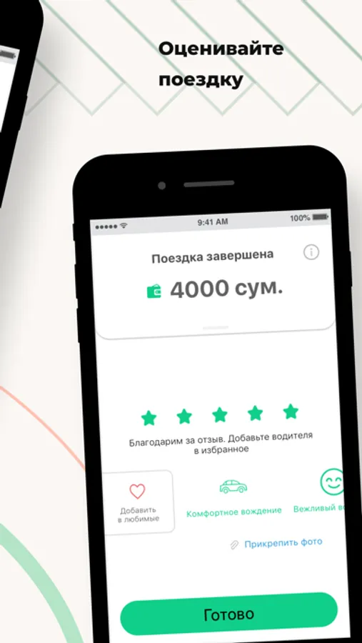 Поставьте оценку водителю, напишите отзыв или выберите реакцию из готовых шаблонов. Прикрепите фотографию к отзыву.