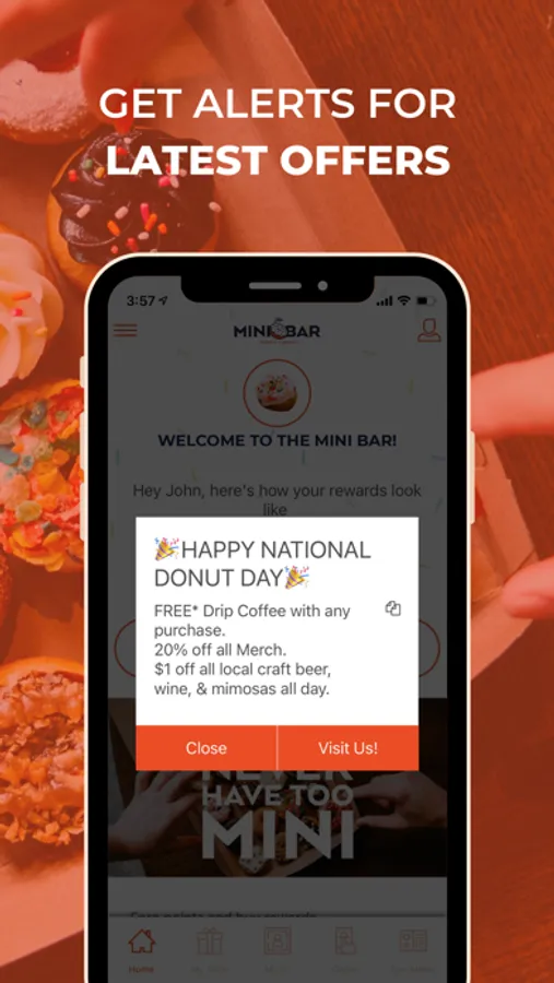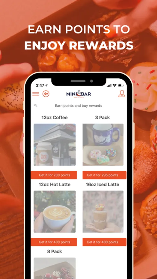 Download The Mini Bar Rewards app to earn Points and Rewards for every purchase. The more you spend the more you earn. The Mini Bar Rewards app also keeps you updated on the latest offers and deals so you miss nothing. Sign up now to enjoy a free 3 pack and 12oz Drip Coffee!