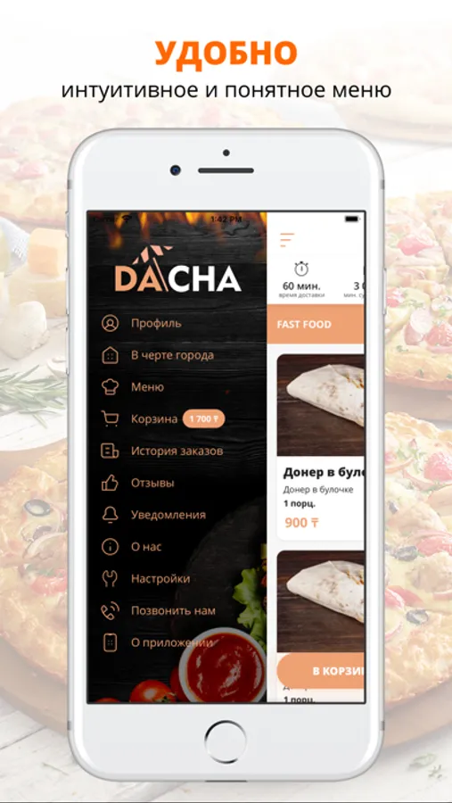 Приложение Dacha — это удобный способ заказа еды домой или в офис! Мы готовим наши блюда из качественных свежих ингредиентов и доставляем еду по Алматы быстро и бережно.