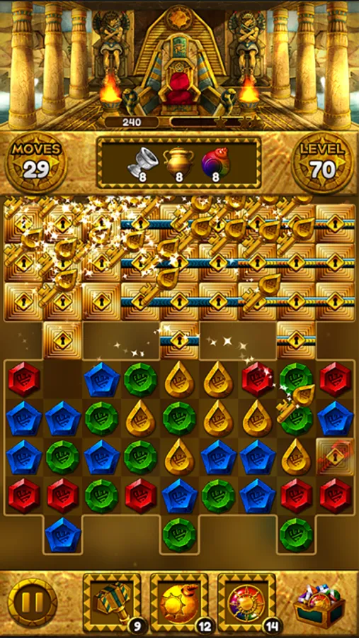 Have you ever dreamt of treasures, jewels and ancient kingdoms? In Jewel Queen: Puzzle & Magic you will dwelve into the halls of an ancient kingdom and help the Jewel Queen herself to restore its magic, uncover its secrets and recover all sorts of ancient artifacts! Assist her in uncovering her lost legacy, hidden within all sorts of puzzles, and ensure the safety of the kingdom by channeling the power of the Sun. Are you up for the challenge? Great rewards await you!