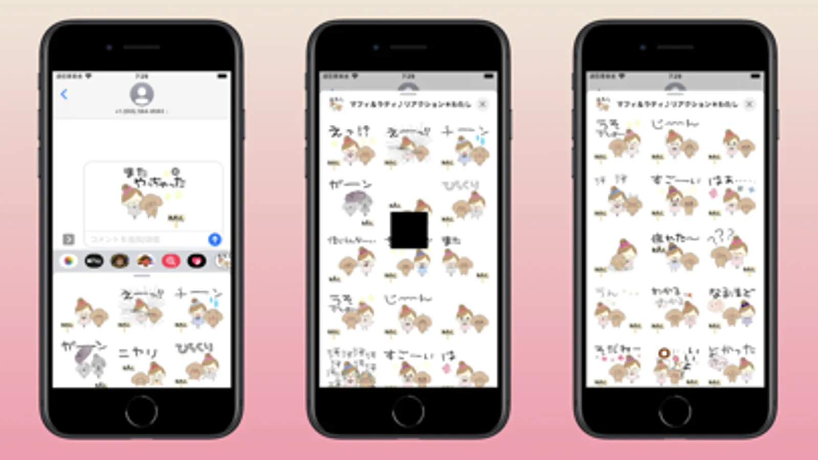 お団子ヘアの女の子”マフィ”と愛犬トイプードルの"ラティ"がかわいく動いてステッカーに登場。こちらのステッカーは、"わたし"の名入りバージョンです。Created by Faa Industry