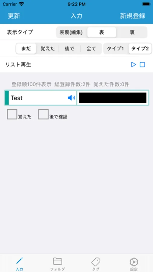 ・登録した単語はリスト形式で学習ができます。